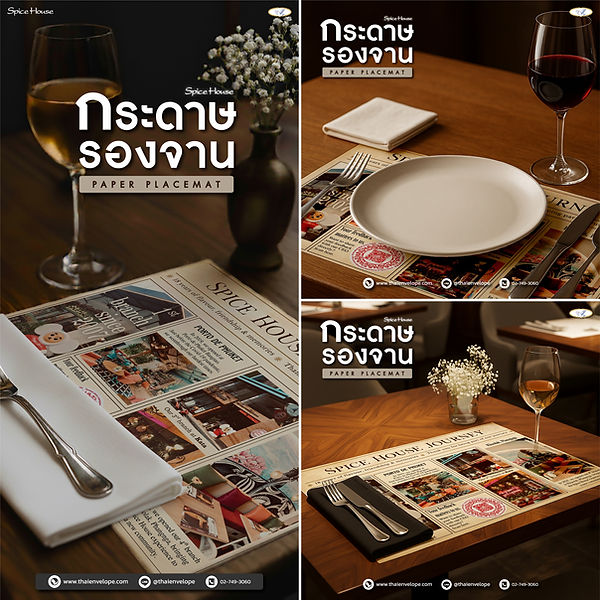Thai Envelope is a company that specializes in printing and manufacturing letter envelopes and document envelope, guaranteeing quality with over 50 years of experience. This means that ordering "Paper Placemats" from Thai Envelope ensures you will receive products that are suitable in terms of both quality and price.